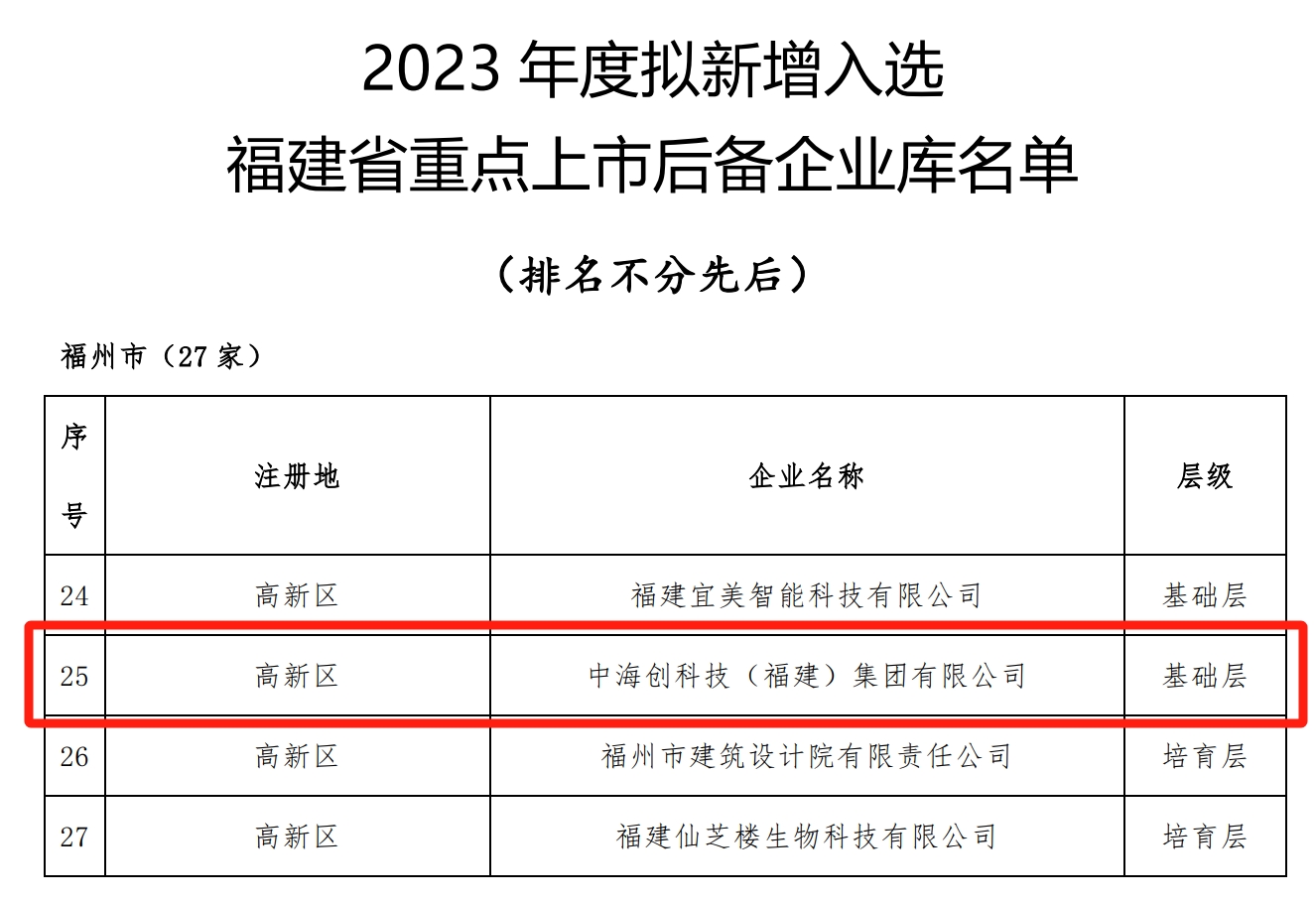 近日,福建省地方金融监督管理局公布“2023年度拟新增入选福建省重点上市后备企业库名单”,中华体会(中国)集团成功入选省重点上市后备企业梯队。